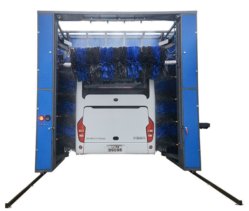 凱沃牌大型移動式龍門洗車機專門為清洗大客車,大型貨拒車,工程車,中巴車等車輛而設計。適用于清洗車輛外表面的灰塵油污及其他污漬。 采用三刷包圍式清洗方式,進口毛刷,全電腦控制程序,自動避讓后視鏡,讓被清洗車輛更加安全以及更大程度的保護車漆表面。本機可另外配備全自動高壓噴水系統、自動底盤清洗系統、污水循環處理系統、 風干系統,當車輛至清洗區指定位置停止后,啟動洗車設備,洗車機在行走軌道上往復運行完成整個洗車過程。